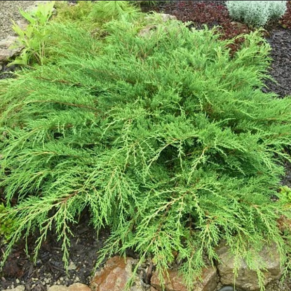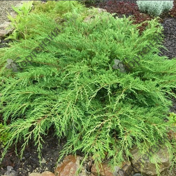 Низкий вечнозеленый хвойных кустарник с распростертой кроной, высотой 60см и диаметром кроны около 2м. Очень старые растения достигают высоты 1м при этом разрастаясь до 5м в ширину. Растет медленно. Годовой прирост 10 см. Ветви тонкие ажурные, покрыты плотно прижатой зеленой чешуйчатой хвоей, растут ярусами, создавая вид каскада, необычайно упругие, выдерживают тяжесть мокрого снега. Созревающие шишки очень мелкие, незаметные. К зиме хвоя становится серо-коричневой. Хорошо переносит формирующую обрезку. Предпочтительнее высаживать в полутени, на влажных рыхлых дреннированных почвах.