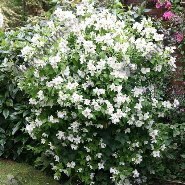 Чубушник гибридный Бель Этуаль - компактный среднего размера кустарник высотой до 2 м и шириной до 2,5 м с раскидистой кроной. Отличается очень хорошим ароматом и продолжительным цветением. Цветки крупные до 5 см в диаметре, с розовым центором. Края лепестков бахромчатые. Цветет в мае-июне в течение 15-20 дней. Листья остро-яйцевидные, 3-5 см длиной, зелёные, расположены супротивно. Предпочитает плодородные, хорошо дренированные, свежие почвы.