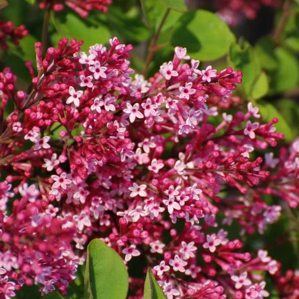 Сирень гибридная 'Ред Пикси' (Syringa 'Red Pixie') - очаровательная, выносливая сирень. Растёт медленно. Куст плотный, компактный, высотой 100-180 см и шириной 100-150 см. Листья небольшие, тёмно-зелёные глянцевые, высокоустойчивые к заболеваниям. Бутоны пурпурно-красные. Цветки трубчатые, вначале красновато-розовые, затем светло-розовые. Аромат сильный. Соцветия метельчатые. Цветение обильное в мае-июне, иногда повторное в конце лета. Идеально подходит для небольших садов. Почти не требует ухода. Место солнечное. Почва влажная дренированная. Зона 3 (до -34ºС).