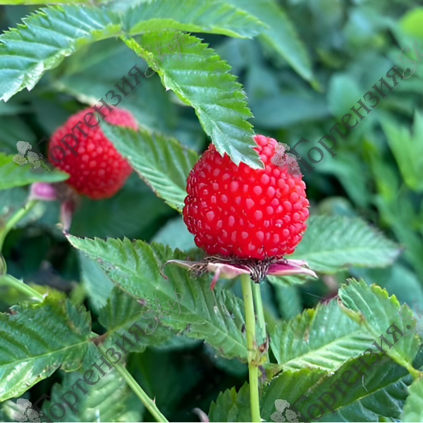 Малино-клубника Земляничная малина Розолин – это уникальный гибрид, сочетающий в себе лучшие качества малины и клубники, также известный как земляничная малина или тибетская малина. Это не просто растение, а настоящая находка для садоводов, желающих разнообразить свой сад необычными и вкусными ягодами. Розолин представляет собой компактный кустарник, достигающий в высоту 30-60 см. Он отличается декоративным видом благодаря крупным, морщинистым листьям, похожим на малиновые, и обильному цветению белыми цветами с июня по июль, привлекающими пчел и других опылителей. Главная особенность – это ягоды, напоминающие одновременно и малину, и клубнику. Они ярко-красные, крупные (до 4 см в диаметре), с характерной зернистой поверхностью, как у клубники. Вкус сочетает сладость малины и легкую кислинкую клубники. Аромат насыщенный, фруктовый, с тонкими земляничными нотками. Ягоды можно употреблять в свежем виде, использовать для приготовления варенья, компотов, десертов и замораживать на зиму. Вес у ягоды 5 гр, урожайность небольшая всего 1кг с куста, сбор ягоды начинается в августе и продолжается до заморозков. Растение устойчиво к болезням и вредителям, не требует сложного ухода. Хорошо переносит зимние холода, что позволяет выращивать его в различных климатических зонах. Куст Розолина украсит любой сад своим необычным внешним видом.