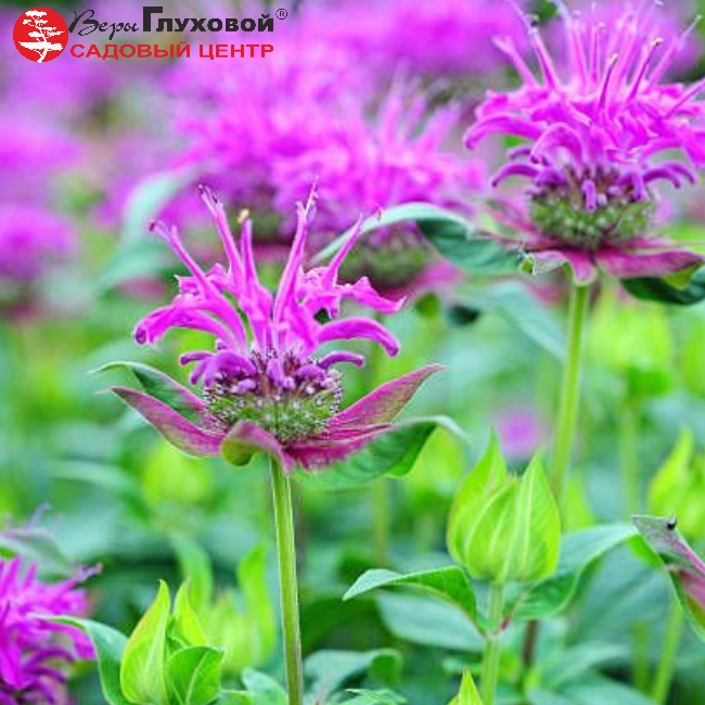 Монарда 'Скорпион' корневищное многолетнее растение. Высота 120 см, листья пальчато-рассечённые,зеленые. Цветки двухцветные, сиренево-розовые, собраны в колосовидные соцветия, цветут с июня по август. Морозостойкость -34С. Почвы предпочитает дренированные, кислые. Используется в миксбордерах, групповых посадках, в альпийских горках, бордюрной посадке и на срезку.